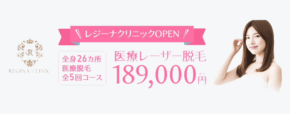 レジーナクリニックの特徴は、なんと言っても料金が安い事でしょう。189,000円〜全身脱毛が可能で、分割払いでも6,800円〜通うことが出来ます。